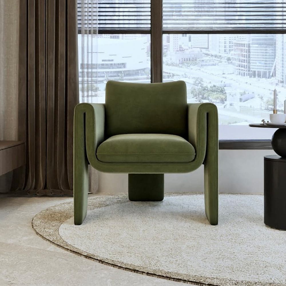 كرسي مخملي باللون الأخضر العميق من الهوم