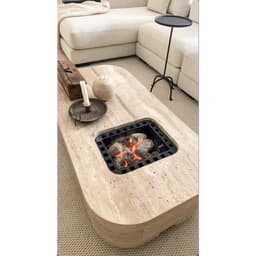 طاولة تقديم رخام مع شواية فحم 120×60×40 سم - بيج من الهوم - 110110140