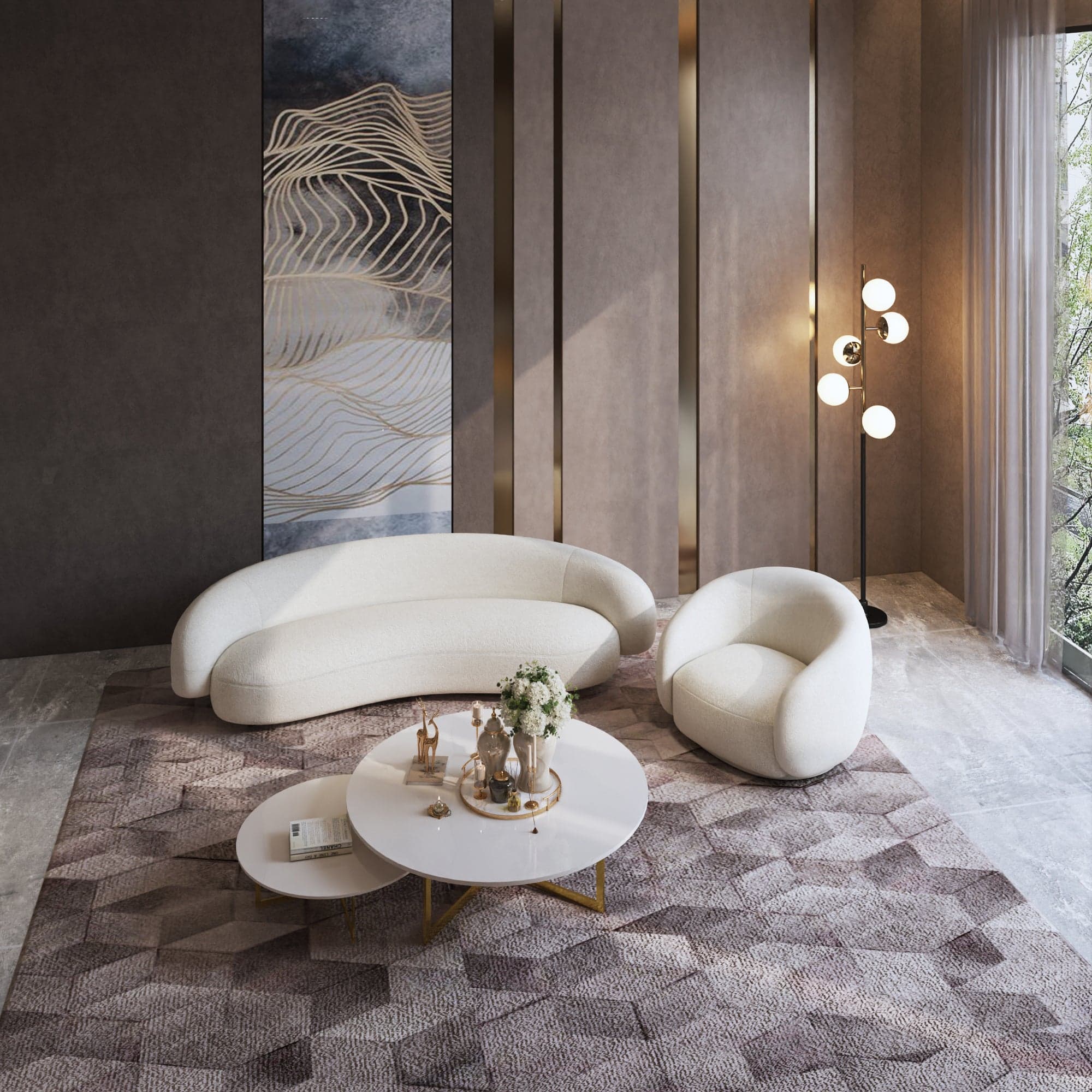 Alhome beige Boucle 3 Seater Sofa - 110110979