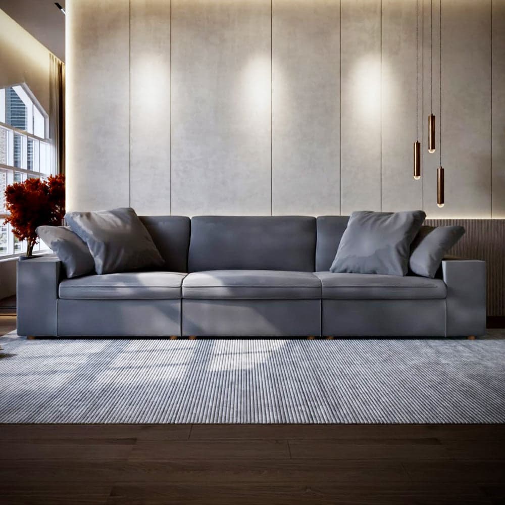 Alhome Gray velvet 3 Seater Sofa - 110110958