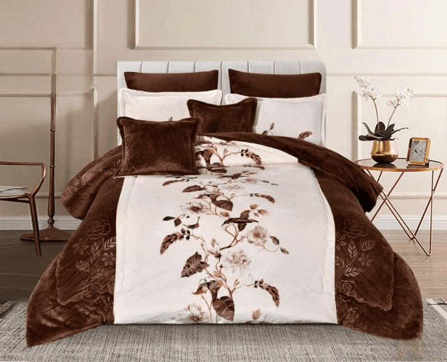 Soft Velvet Bedding With A Fur Interior - 8 Pieces - Double - Floral - Multi-Colored By Alhome - 110112697