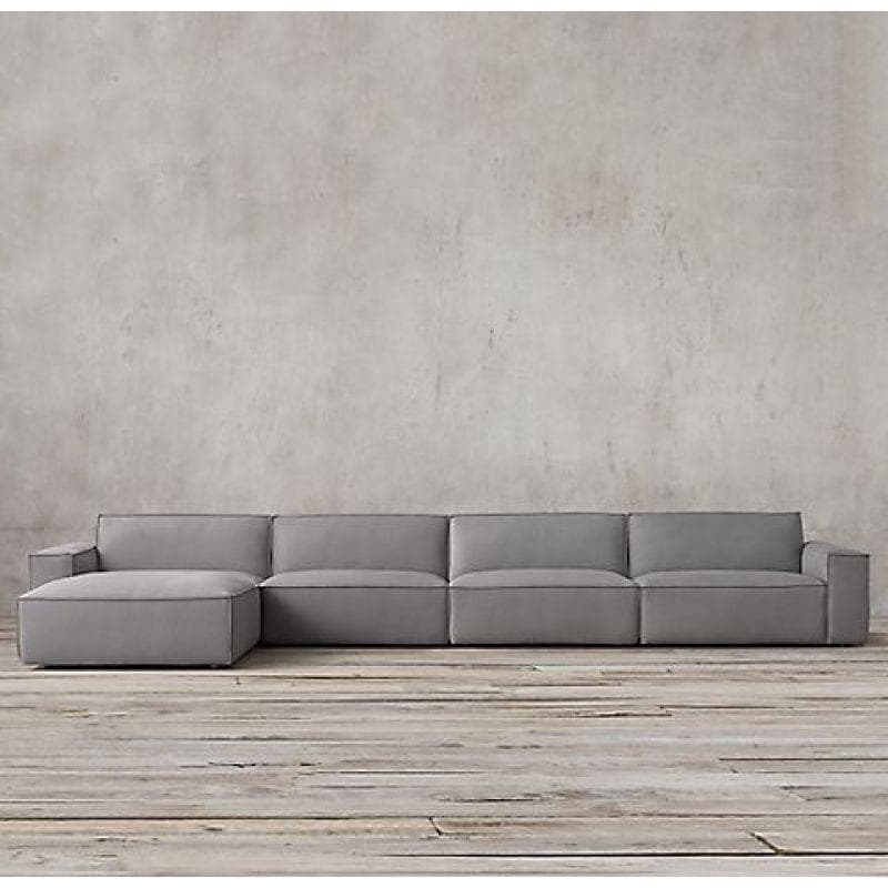 Spacious Gray Velvet L-Shaped Sofa - 85x400x180x45 cm - Swedish Wood By Alhome