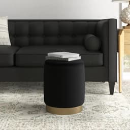 Alhome Velvet Black Pouf Malaysian Wood, Velvet Fabric, Black Color (40x40x50)